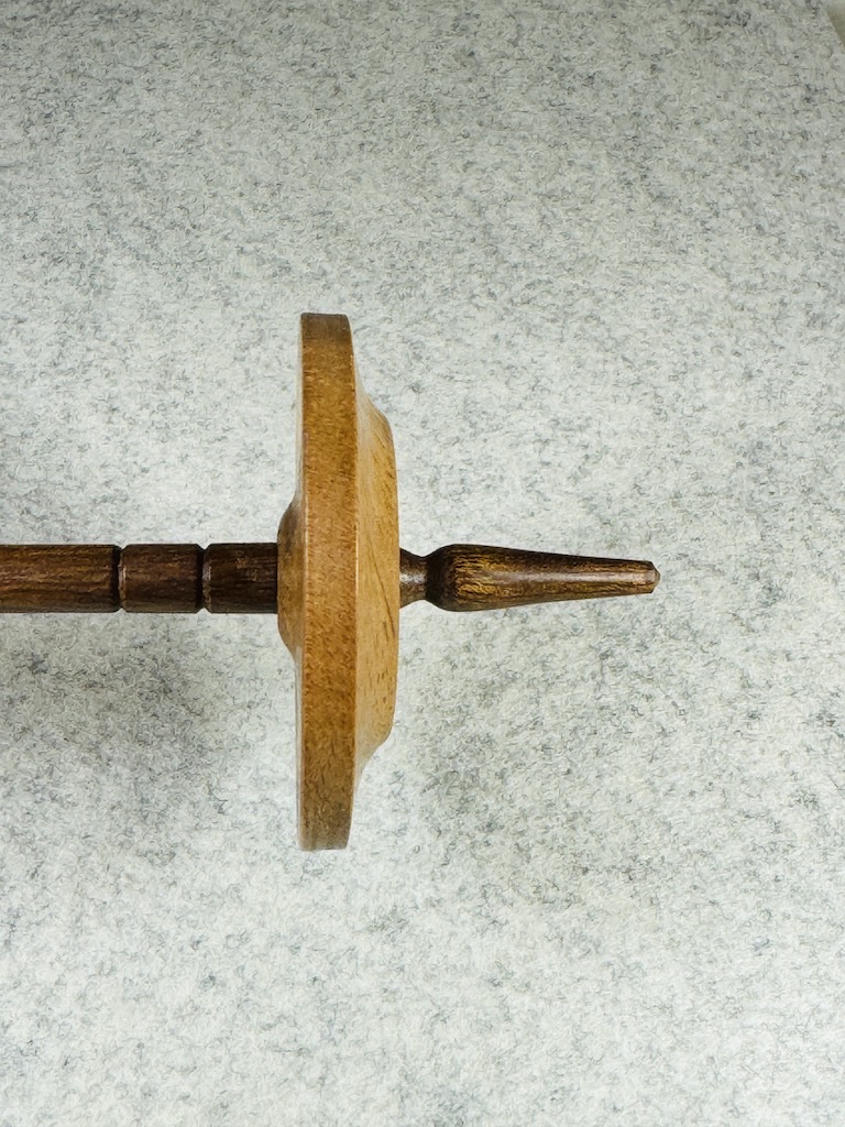 Mit dieser Spindel komme ich dem Wunsch meiner Kundschaft nach, auch andere und höherwertigere Hölzer für die Lernspindeln zu verarbeiten.