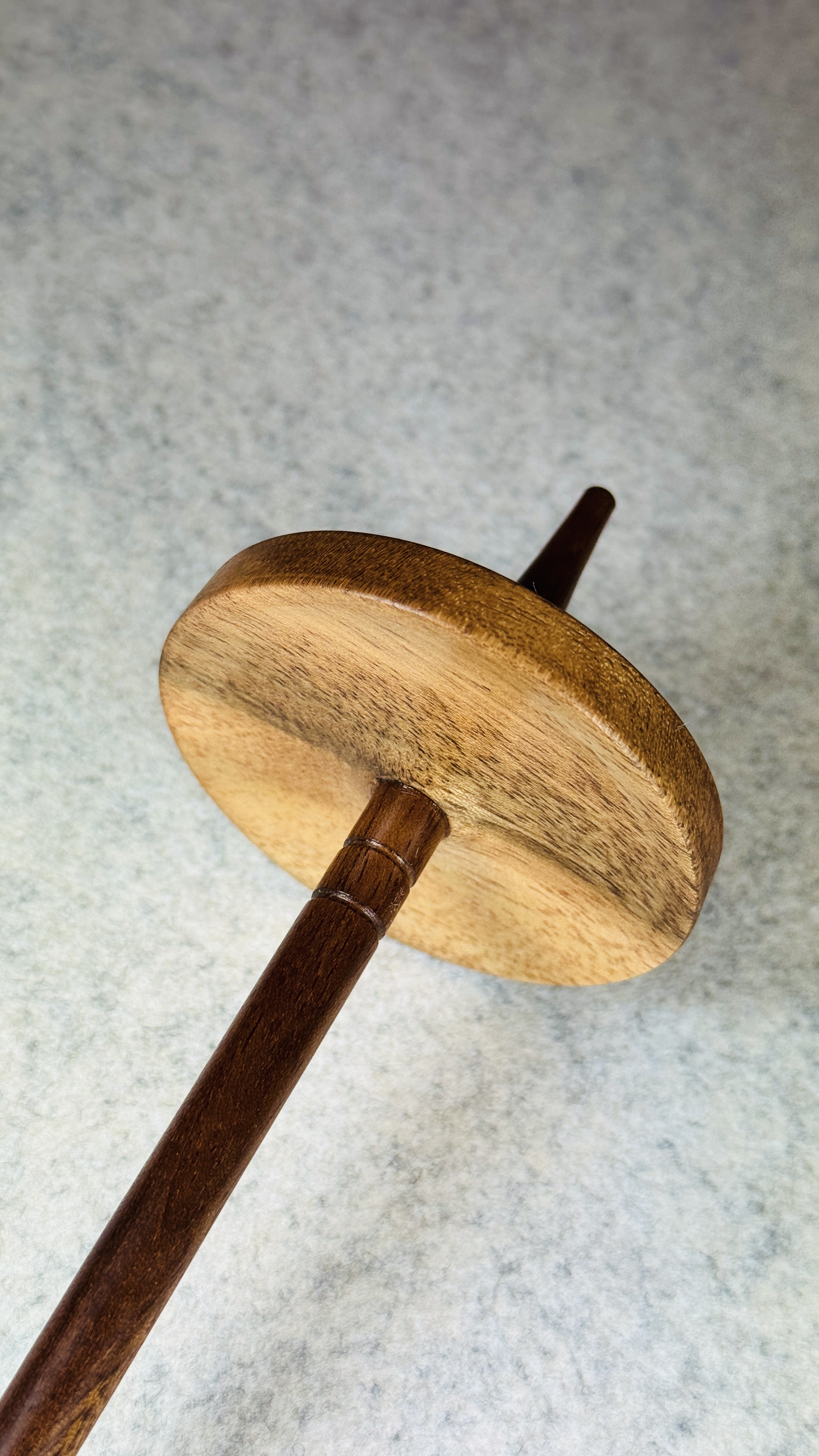 Mit dieser Spindel komme ich dem Wunsch meiner Kundschaft nach, auch andere und wertigere Hölzer als Lernspindeln zu verarbeiten.