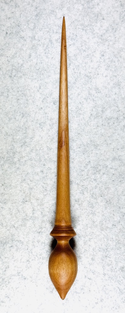 Sie ist von ihrem Gewicht her für das Spinnen von eher feinem Garn geeignet.