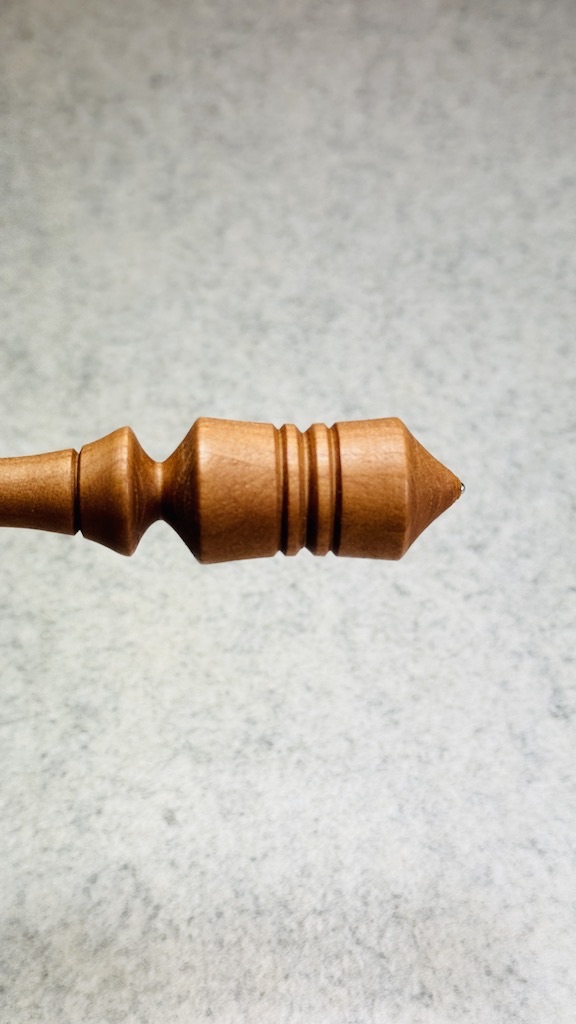 Die dort typische Form in Verbindung mit dezenten Verzierungen geben der Spindel Eleganz und Gediegenheit.
